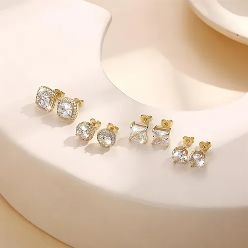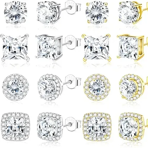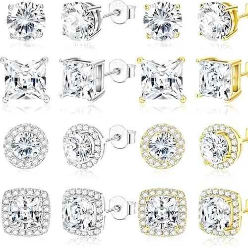 ·Silver Stud Earrings Set: Sold by 4 pairs a set. 10mm post, standard size suitable for most people. Cubic Zirconia size approx 8mm-10mm. Brilliant cut CZ especially for person who want large studs that looks more eye-catching.