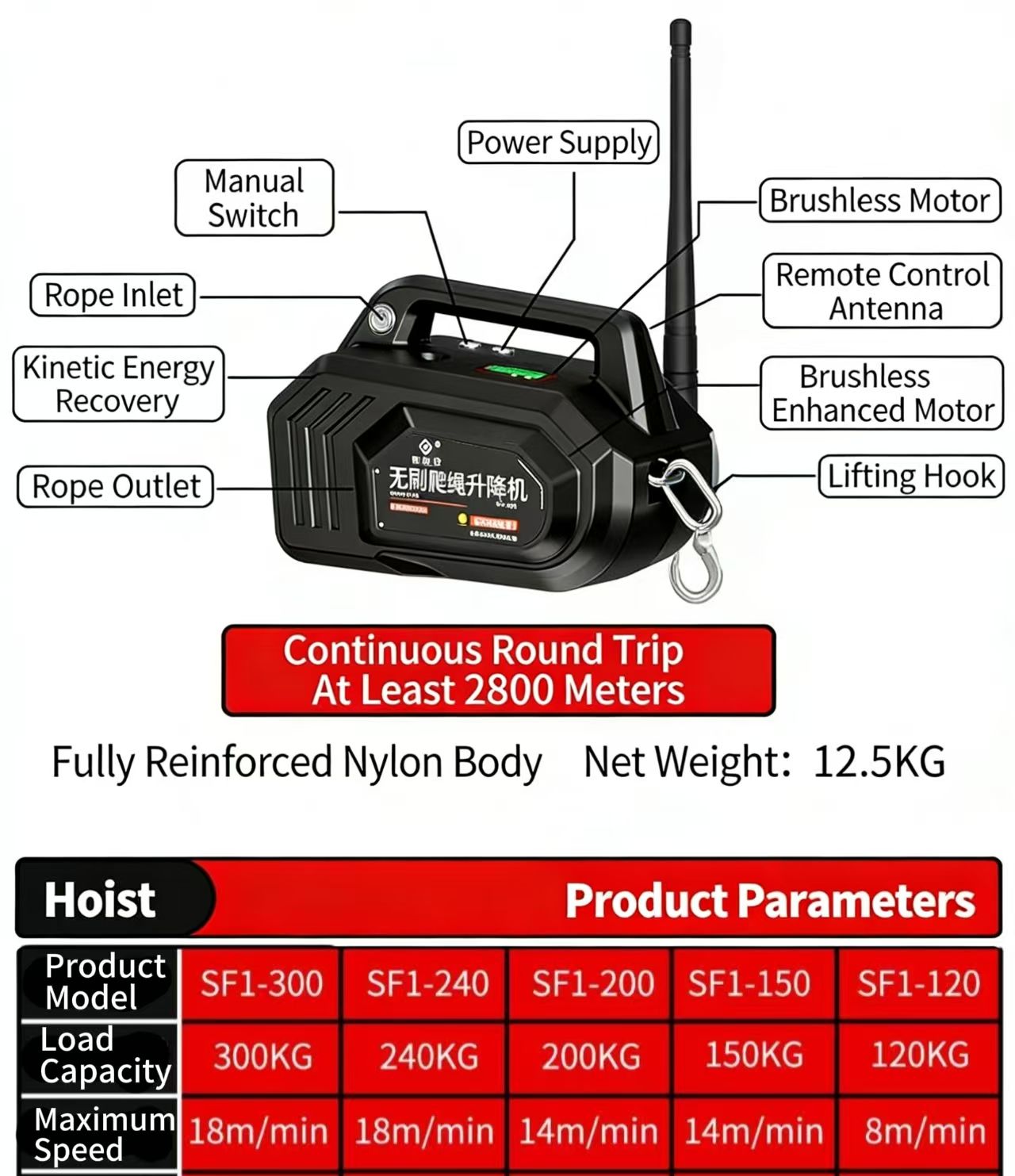 Featuring a powerful brushless motor, this lightweight lift can be carried with one hand yet delivers stable lifting of heavy loads on a single rope. Setup is quick and tool-free—simply anchor it to a windowsill, beam, or tree branch, and it's ready to go. Ideal for moving supplies, aerial work, or outdoor projects, it makes vertical transport as effortless as zipping a backpack.