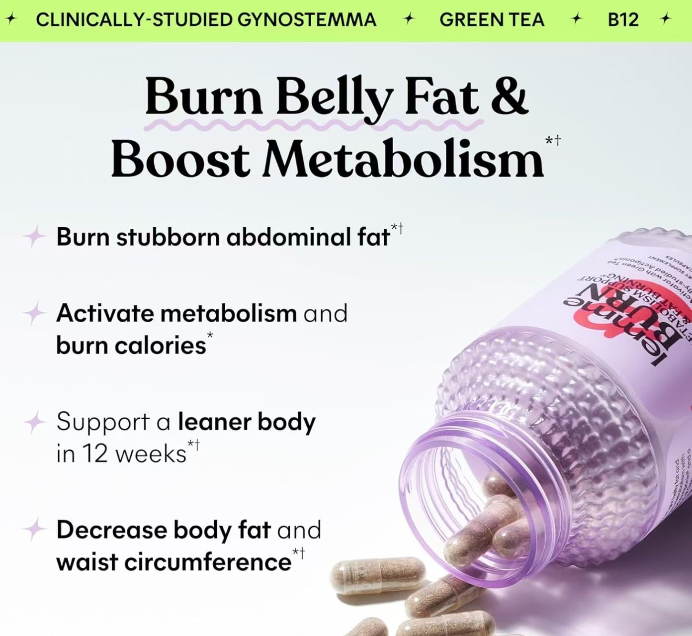 •FIGHT BELLY FAT: Formulated with patented Actiponin Gynostemma plant extract, clinically shown in numerous trials to encourage the body to burn stored abdominal fat and promote healthy metabolism in 12 weeks.*