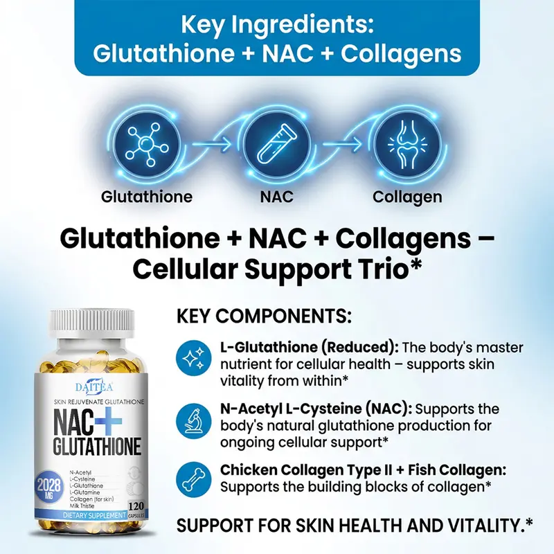 NAC+Glutathione Health Supplement,Supports Liver Health and Skin Health,120 Capsules
